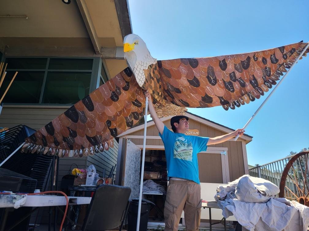 I got to know Bri Dennison when she started helping me figure out how to post Common Ground, my Substack contribution to the Iowa Writer’s Collaborative. She has many talents as an assistant, but I just discovered that column writing is one of them. If I’d been her English 101 teacher in college I’d have suggested she find a way to make writing a part of her career path. She grew up in Dewitt, Iowa and graduated from DePauw University. She worked as a staffer for Congressman Dave Loebsack before moving to California with her husband, who is also an Iowan. Now she works for her sister-in-law Jen Speers who started a small business, Moonwake Collaborative, to support small businesses with admin systems and their online presence. After hearing the story of her summer volunteer experience, I suggested Bri write a guest column this week. After all, I suggested, “I’m a teacher and you’re young enough to have been one of my students so how about writing the obligatory “How I spent my summer vacation” essay. My favorite part is Pat Nixon demanding that someone cut the barbed wire fence between Mexico and California. Or maybe it’s the condor and the eagle legend or the photo of the Eagle puppet? Here it is. You decide.