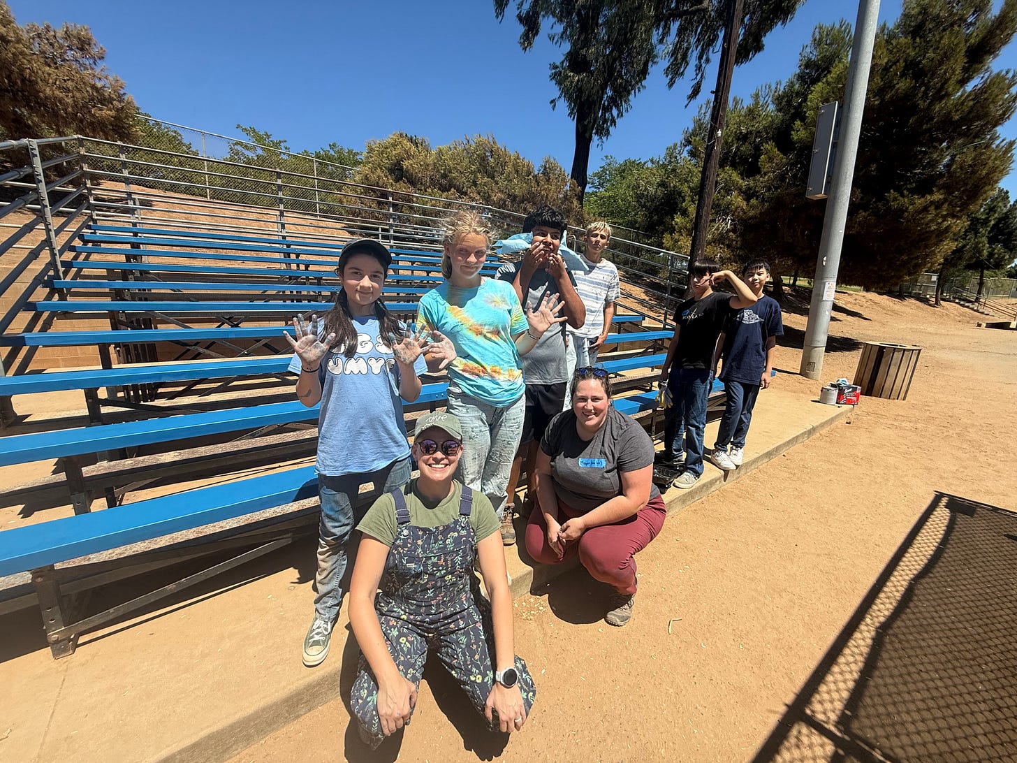 Our work team rotated through several projects instead of focusing on one project. In a traditional SSP week, volunteers often build relationships with the homeowner whose house they’re repairing. For us, the “homeowner” became the entire community of National City. We painted city park bleachers that was funded by a grant that covered supplies but not labor. We pulled invasive species from the local beach. We were scheduled to go to The Tijuana River National Estuarine Research Reserve later in the week to help with gardening and clearing old stumps and debris. The ninth-grade boys were particularly excited by the prospect of handsaws.
